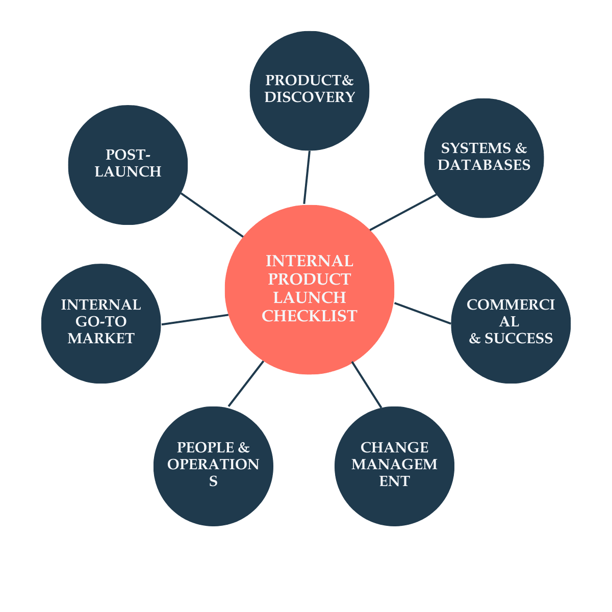 Before diving into the detailed checklist, here’s the high-level view of what an internal product launch actually touches.